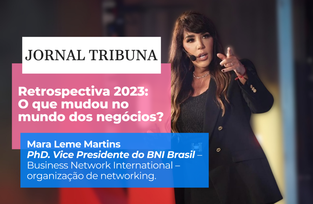 O ano que se finda também foi marcante para os negócios, a psicóloga e VP do BNI Brasil, Mara Leme Martins, contou detalhes dos debates que movimentaram o mundo corporativo, e que devem mudar o mercado no próximo ano Publicado em: https://jornaltribuna.com.br/2023/12/retrospectiva-2023-o-que-mudou-no-mundo-dos-negocios/ São Paulo, novembro de 2023 – À medida que nos aproximamos do final de 2023, é evidente os momentos de reflexão […]
